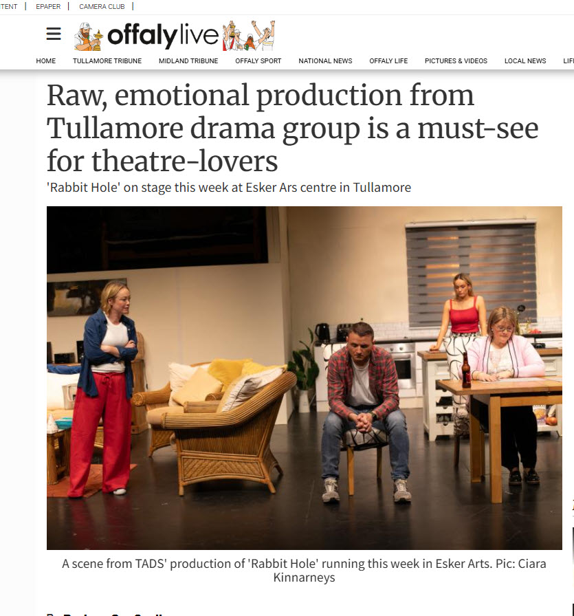 Read the full article here: https://www.offalyexpress.ie/news/home/1946416/raw-emotional-production-from-tullamore-drama-group-is-a-must-see-for-theatre-lovers.html